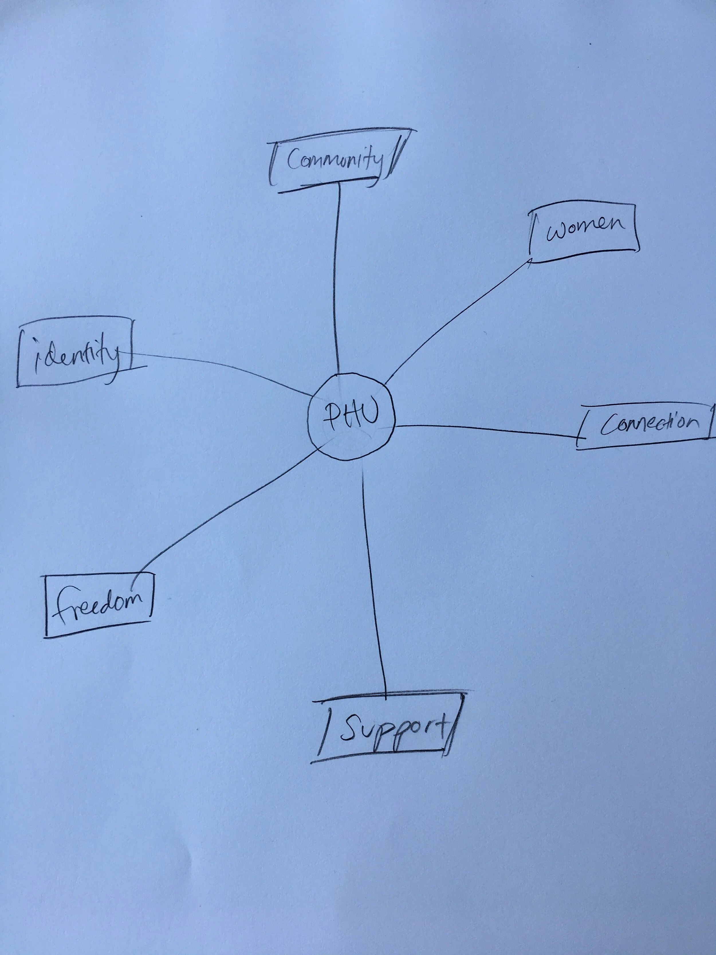 First idea tree sketches, strategizing how the core user needs & PHU interact.